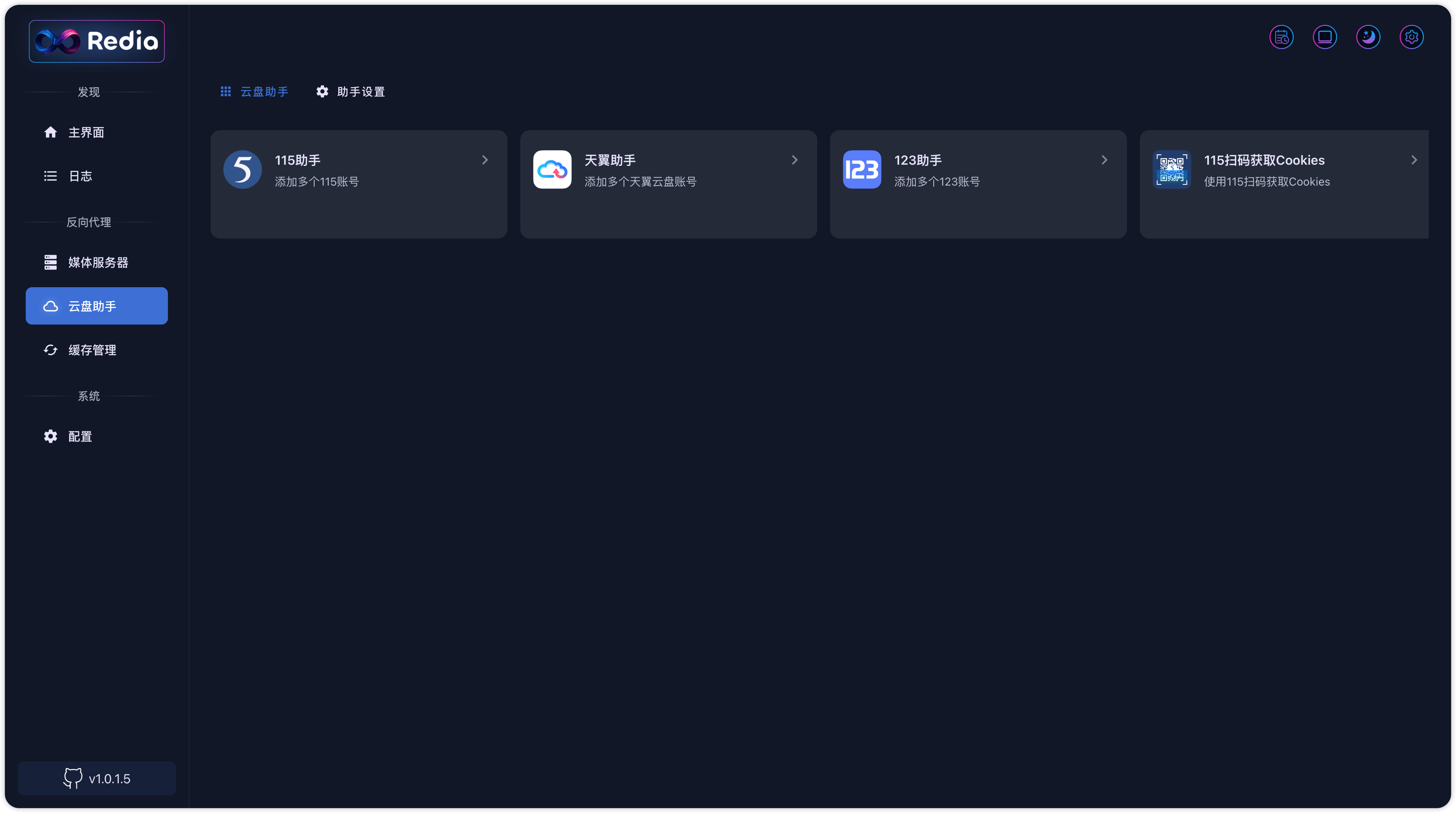 导航到 反向代理 → 云盘助手,按照界面提示完成云盘提示。