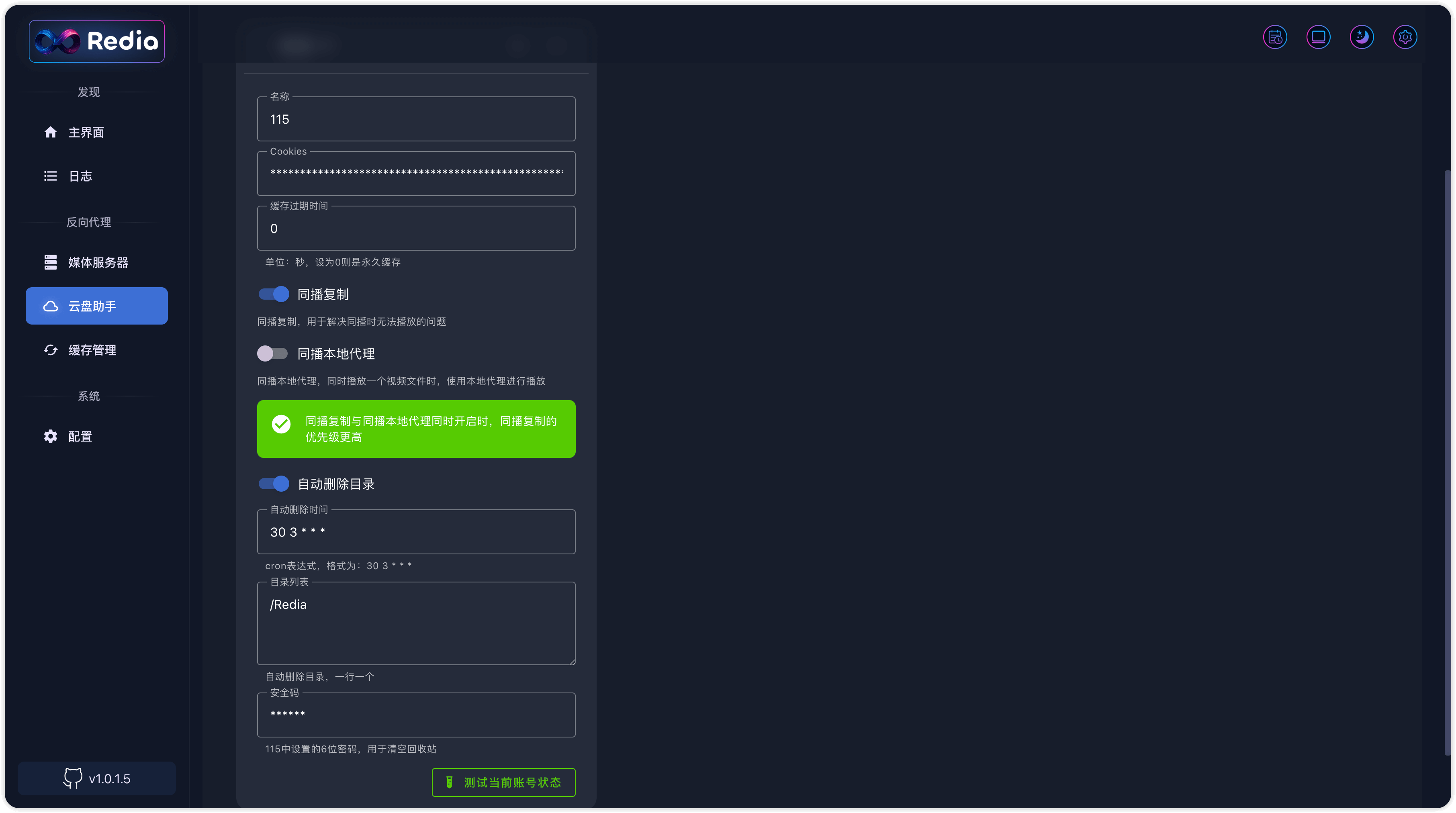恭喜!您已成功配置 Redia,现在可以享受流畅的云盘直链播放体验了!🎉
