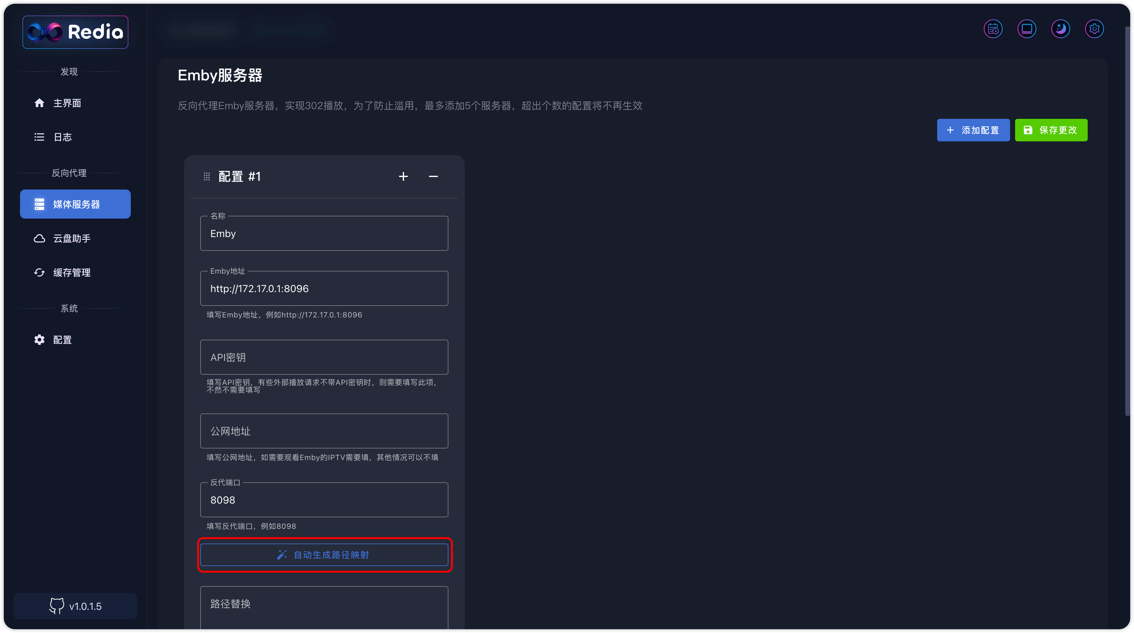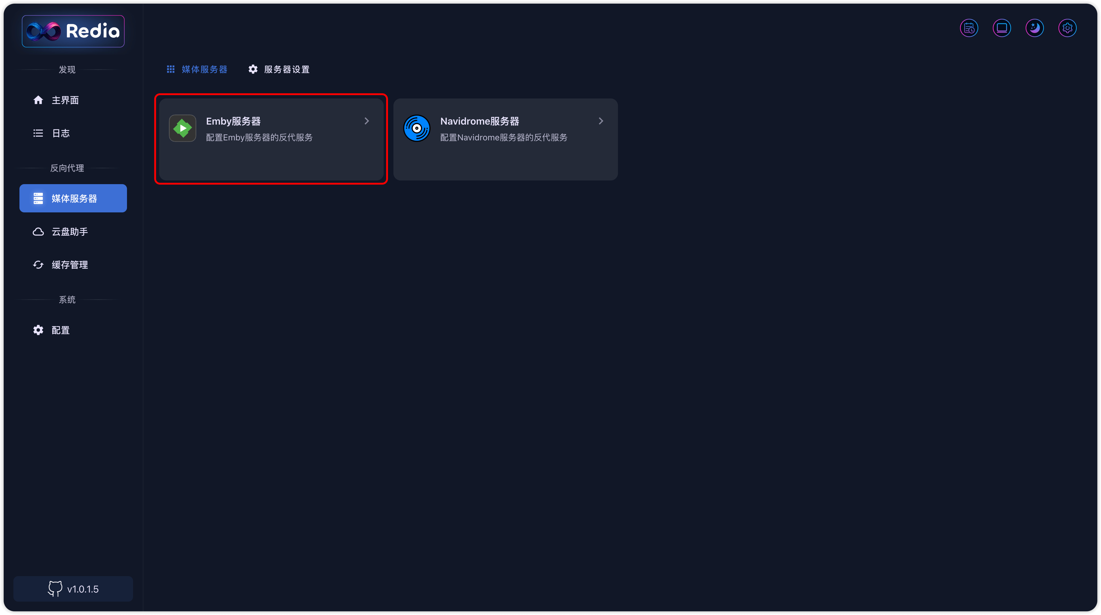 导航至 反向代理 → 媒体服务器 → Emby 服务器: