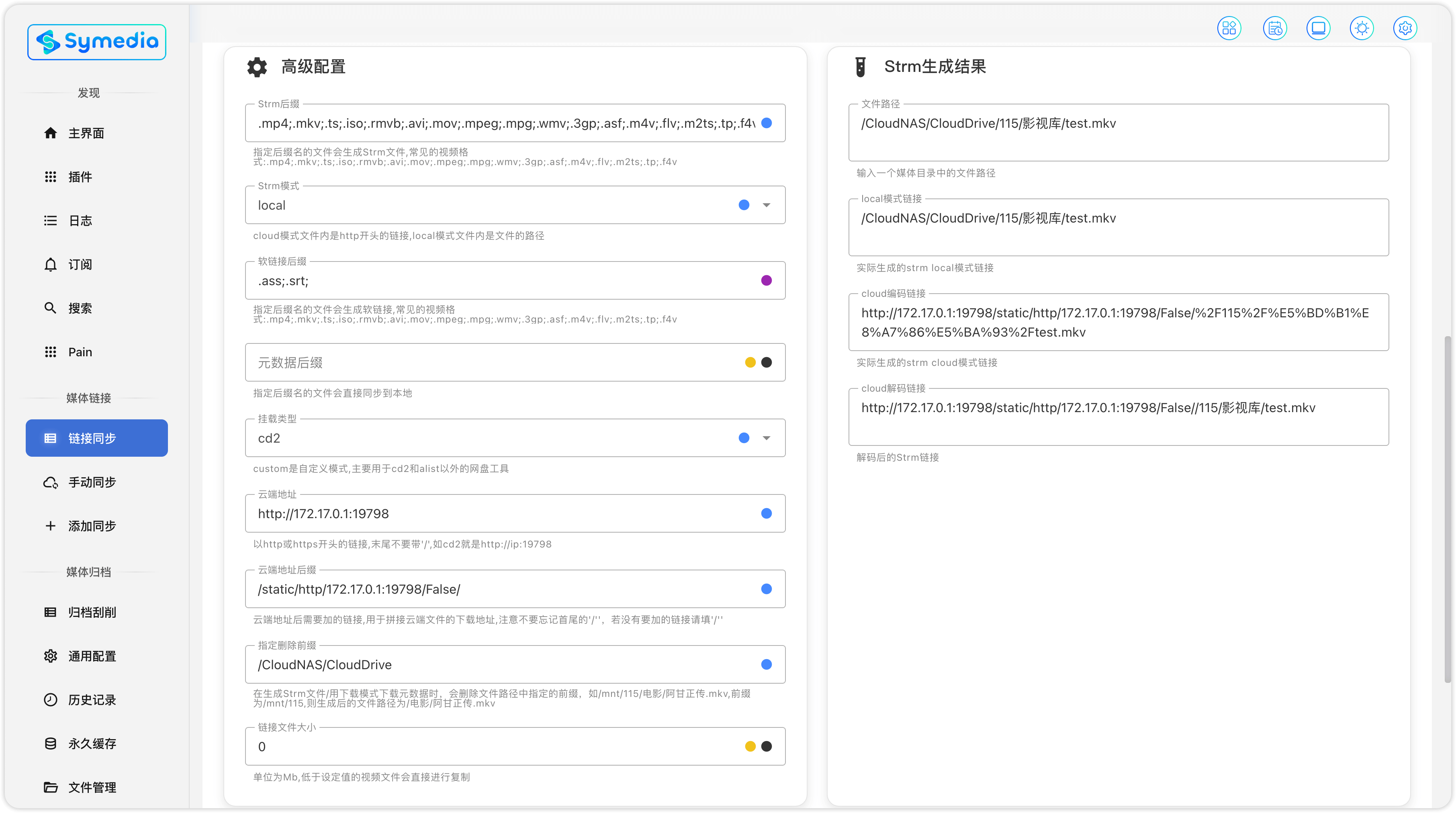http://192.168.31.10:19798//static/http/192.168.31.10:19798//False//CloudNAS/CloudDrive/115/影视库/电视剧/test.mkv- 在 cd2 中查看我路径实际为:
