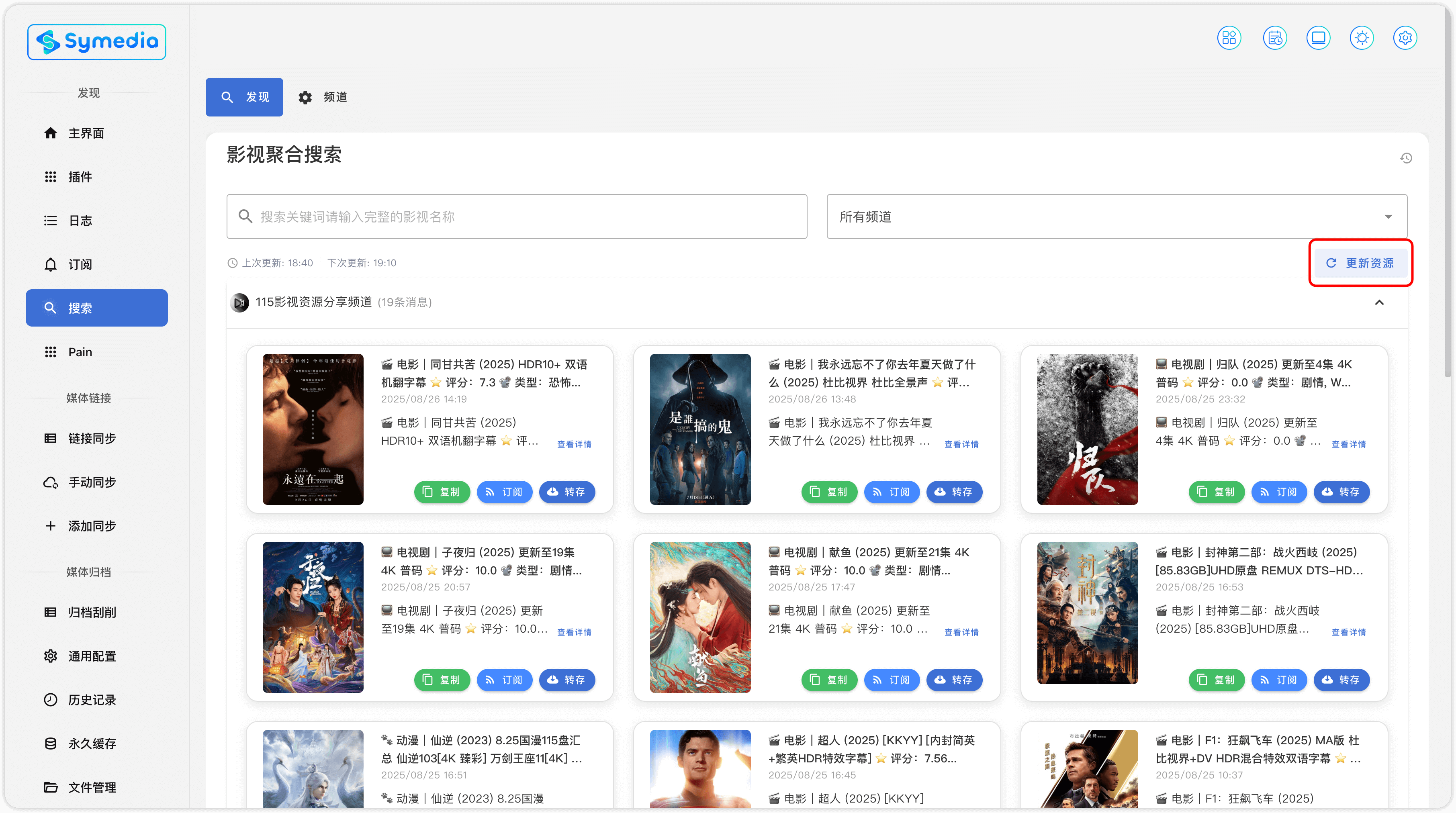 - 频道名称在第一次更新资源后,会自动更新为频道本身的名称,也可以手动修改为自己喜欢的名称