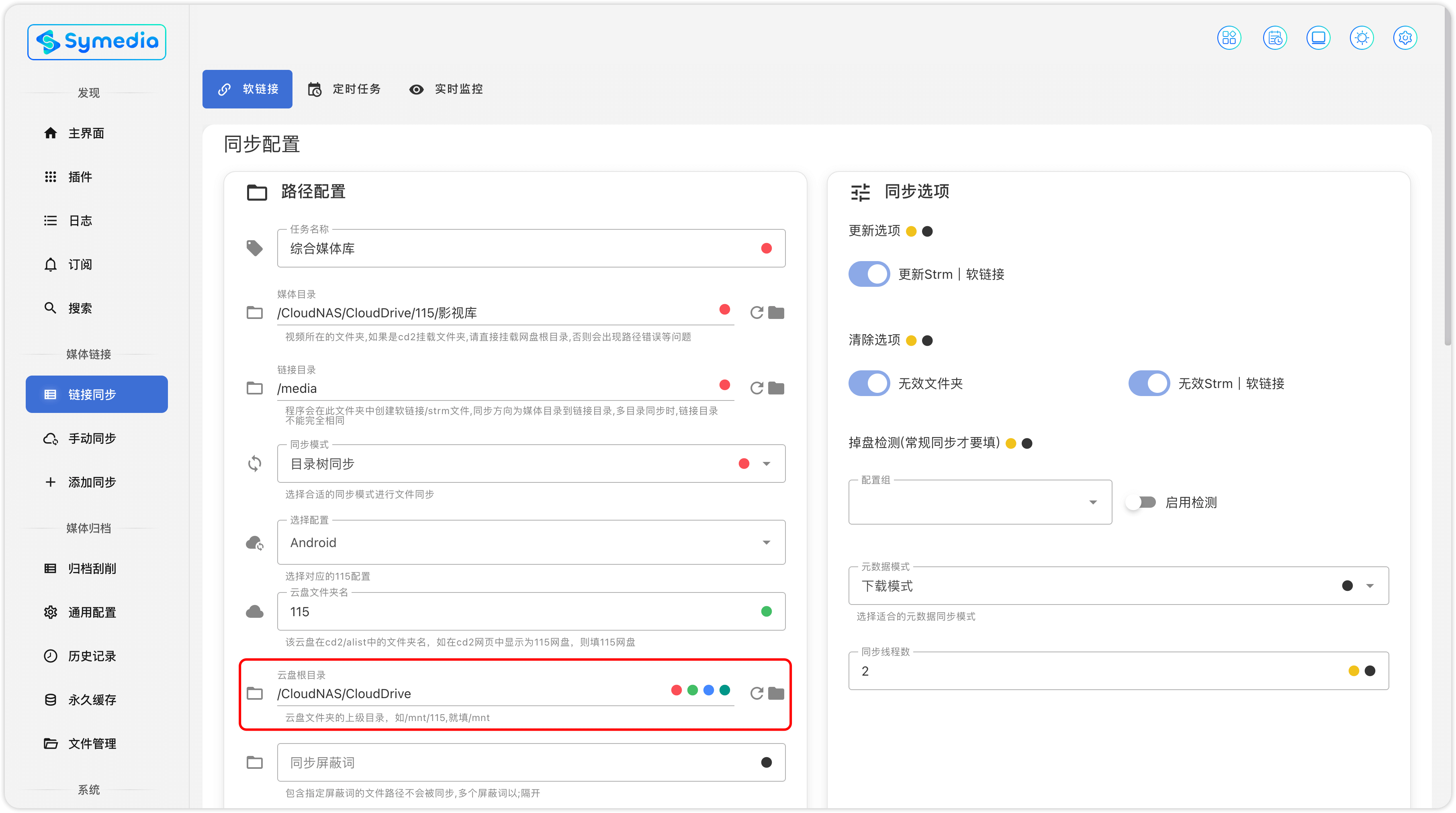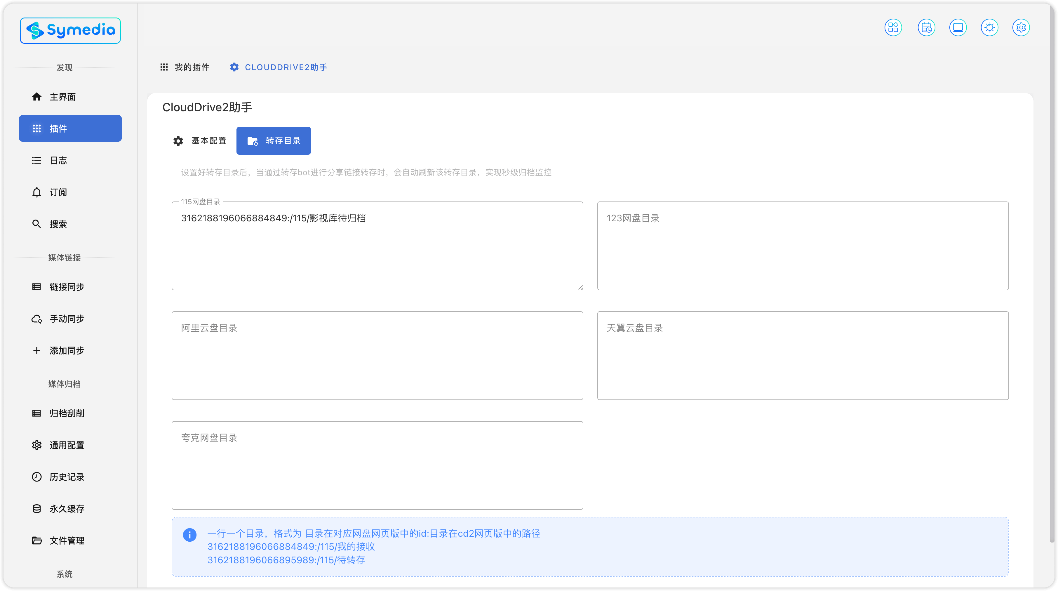 | 115 网盘目录 | 非必填 | 目录在对应网盘网页版中的cid:目录在cd2网页版中的路径。 |